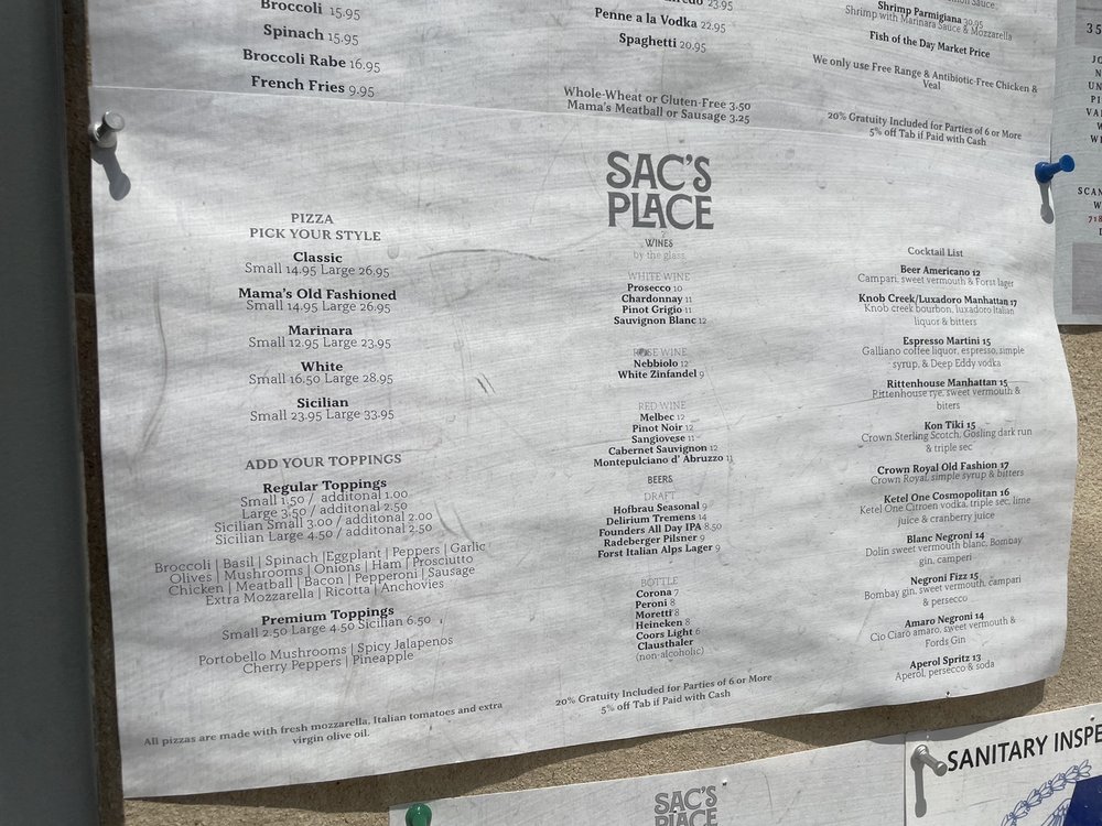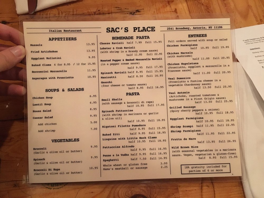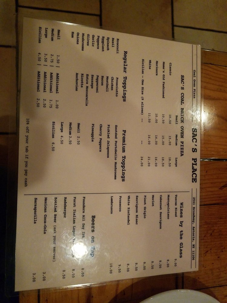 Located in Astoria, NY, Sac's Place is a beloved Italian pizza spot known for its top-notch pies. Offering delivery, takeout, and outdoor seating, this casual restaurant is perfect for a laid-back dinner or a group celebration. Famous for their authentic Italian dishes, Sac's Place has received rave reviews from customers praising the friendly staff and delicious food.